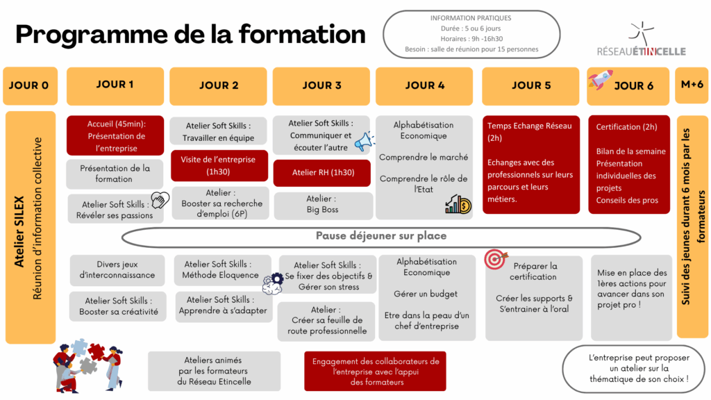 Nos parcours de formation se déroulent sur 7 jours, dont 6 animés au cœur de l’entreprise.